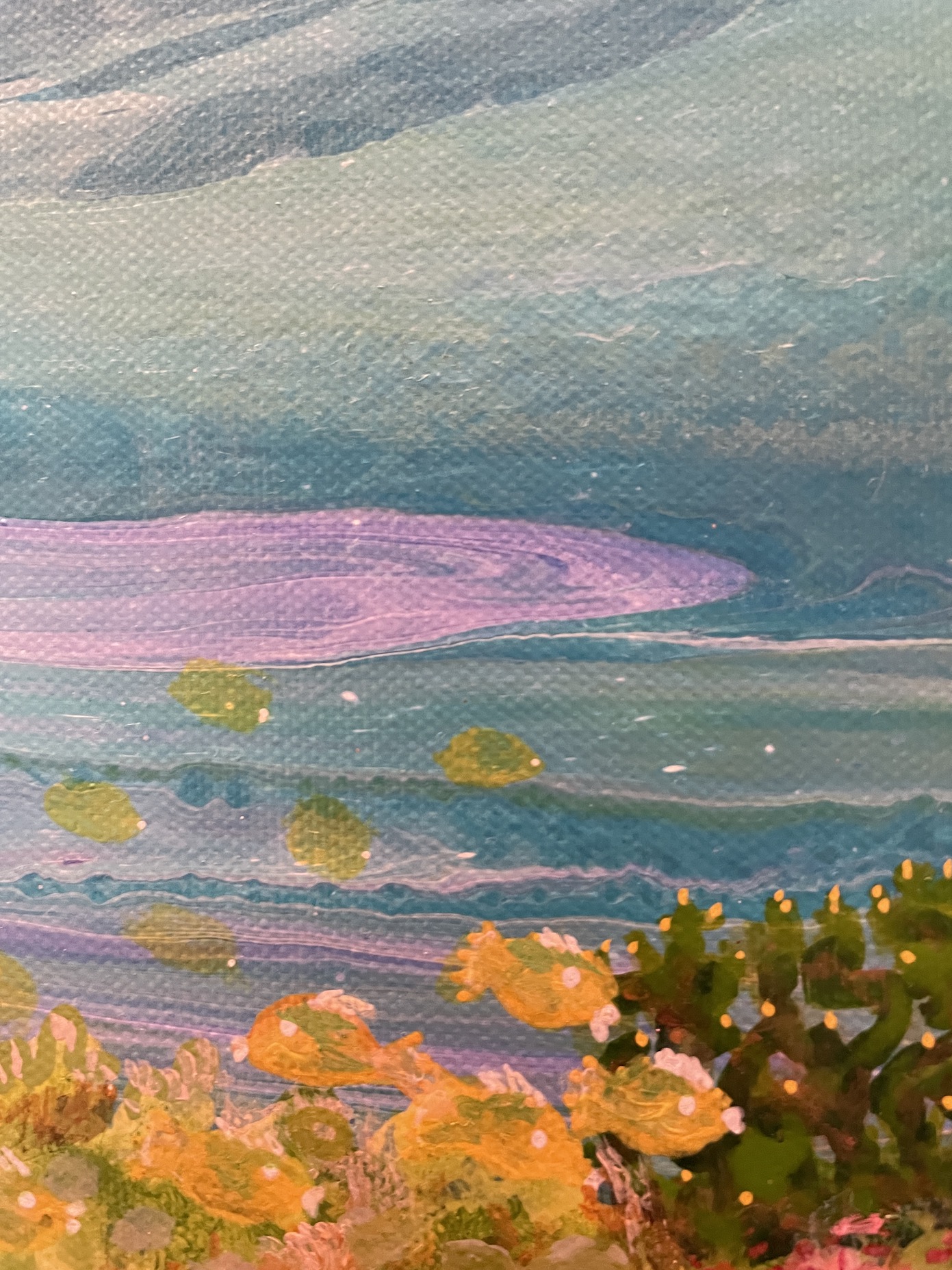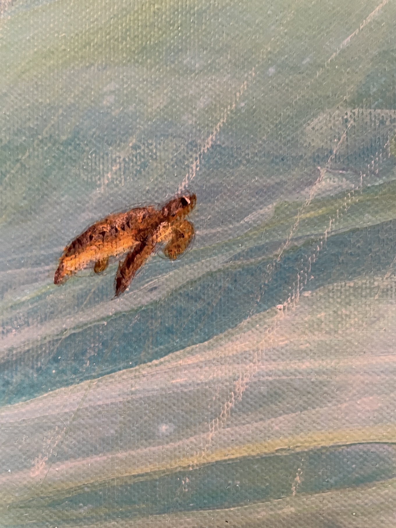 Kunden ville ha en undervattensvärld med en karibisk touch. Jag hade olika semesterminnen att välja bland och mixa ihop till en helhet som var högst personlig för henne. Den här typen av motiv görs med de allra finaste penslarna, lager för lager. Många penseldrag med kärlek och nöje.