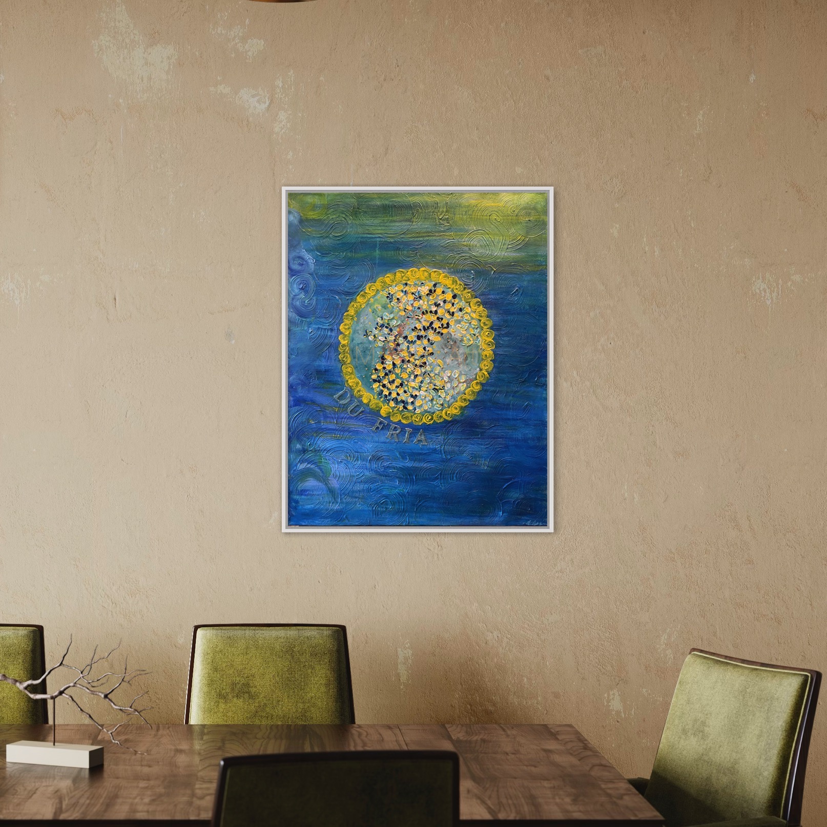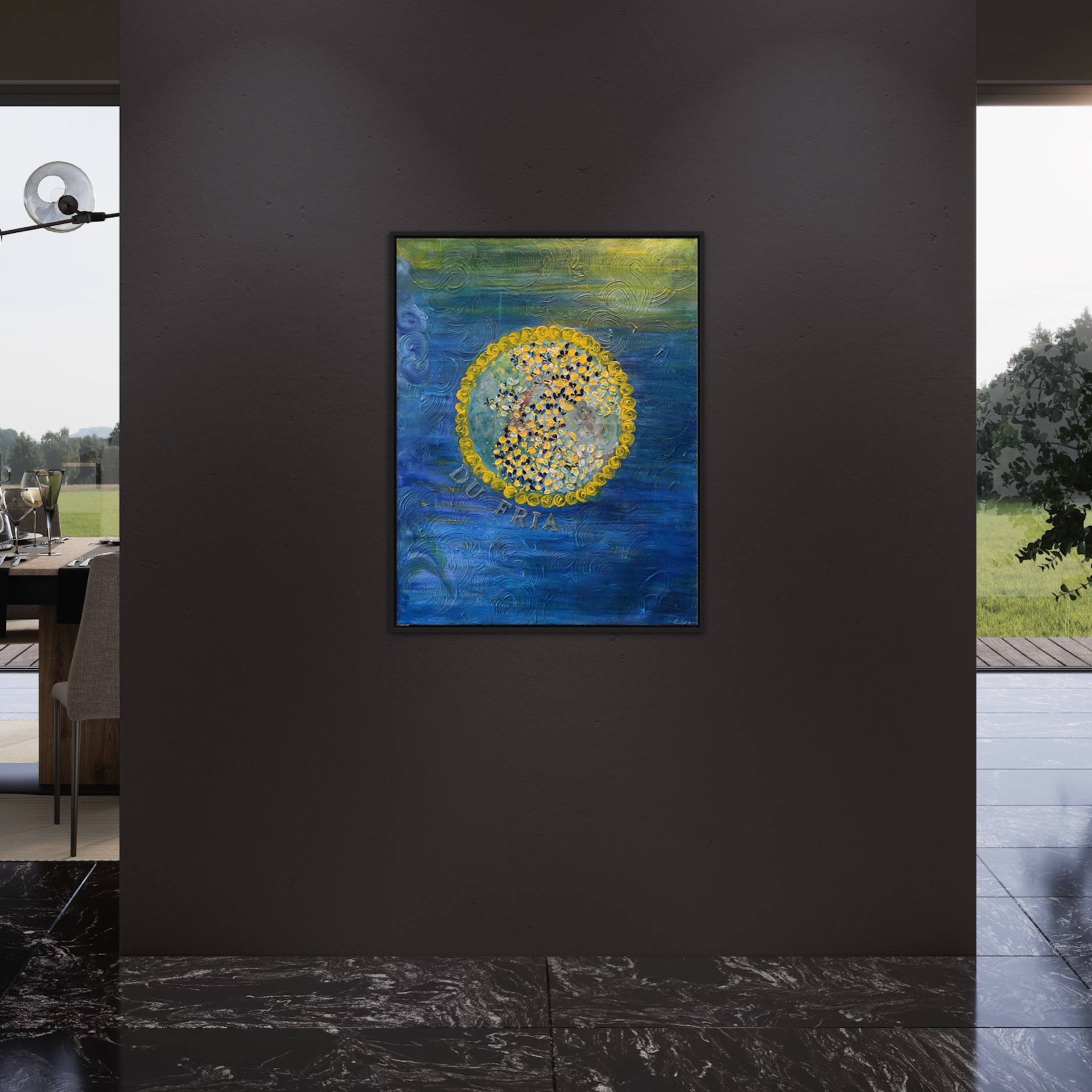 Ramarna som ingår har en så kallad svävande montering. Det finns 4 alternativ; Svart, Vit, Silver och Guld. Se foton och information under rubriken Butik/Ramar. Den har ett djup på ca 3,5 cm och lägger ca 2 cm extra till canvasramens yttermått.