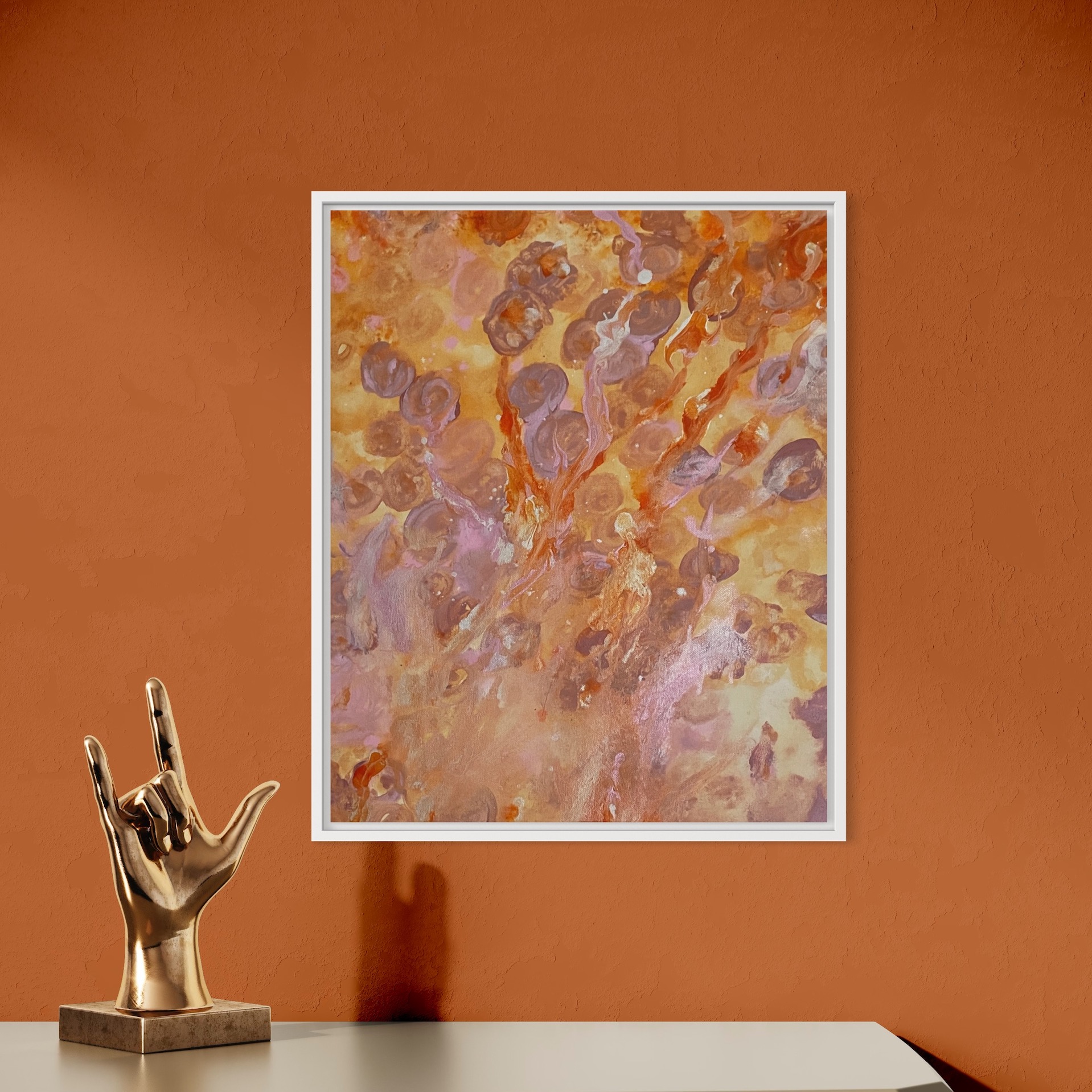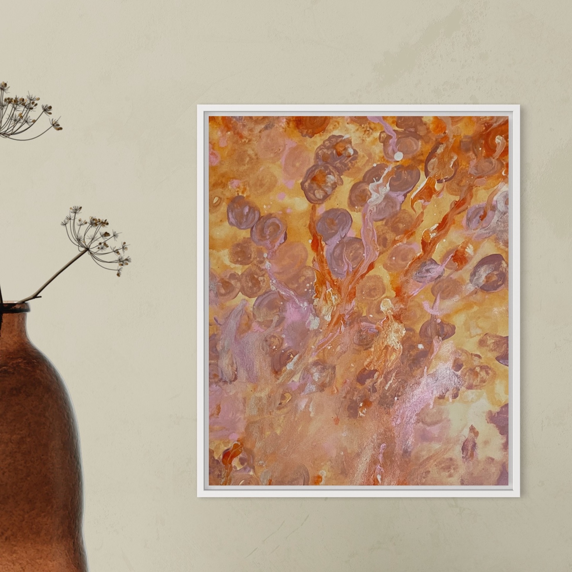 Ramarna som ingår har en så kallad svävande montering. Det finns 4 alternativ; Svart, Vit, Silver och Guld. Se foton och information under rubriken Butik/Ramar. Den har ett djup på ca 3,5 cm och lägger ca 2 cm extra till canvasramens yttermått.