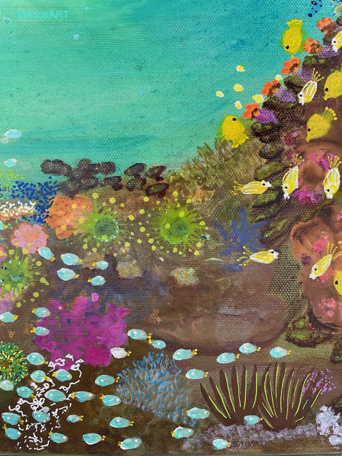 Här är det väldigt många olikheter som samsas i harmoni. Fiskar överallt, alla sorter med sina favoritkoraller och favoritväxter. Gömställen och matställen – så mycket liv. Jag ville inte inse att den faktiskt var klar, lusten att fortsätta var så stor att jag frestades att direkt göra en till fast ännu större.