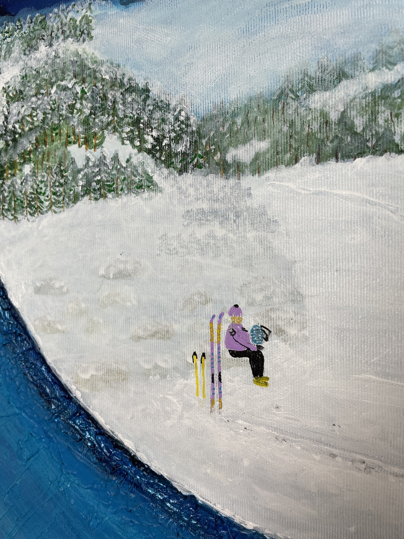 En kaffepaus smakar aldrig bättre än utomhus när det biter lite i kinderna. Här är det mycket struktur i ett cirkulärt mönster under de vinterblåa tonerna.