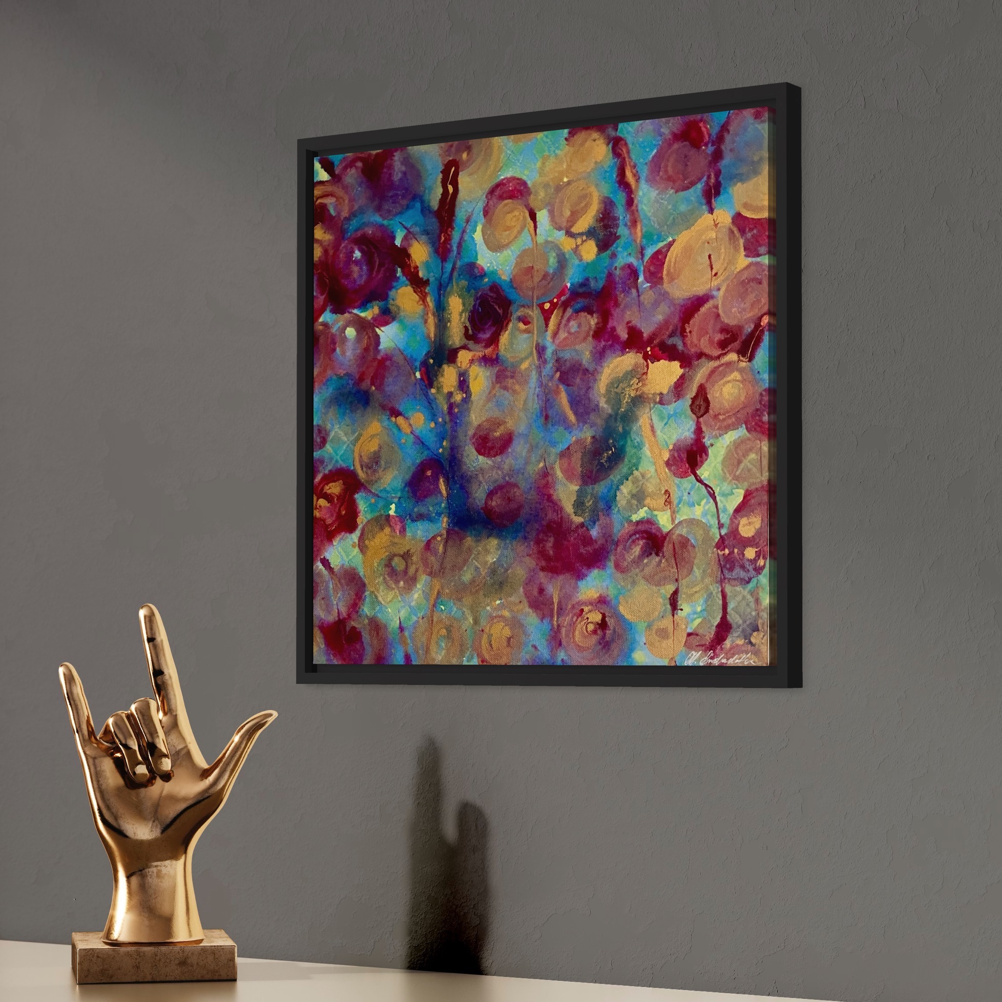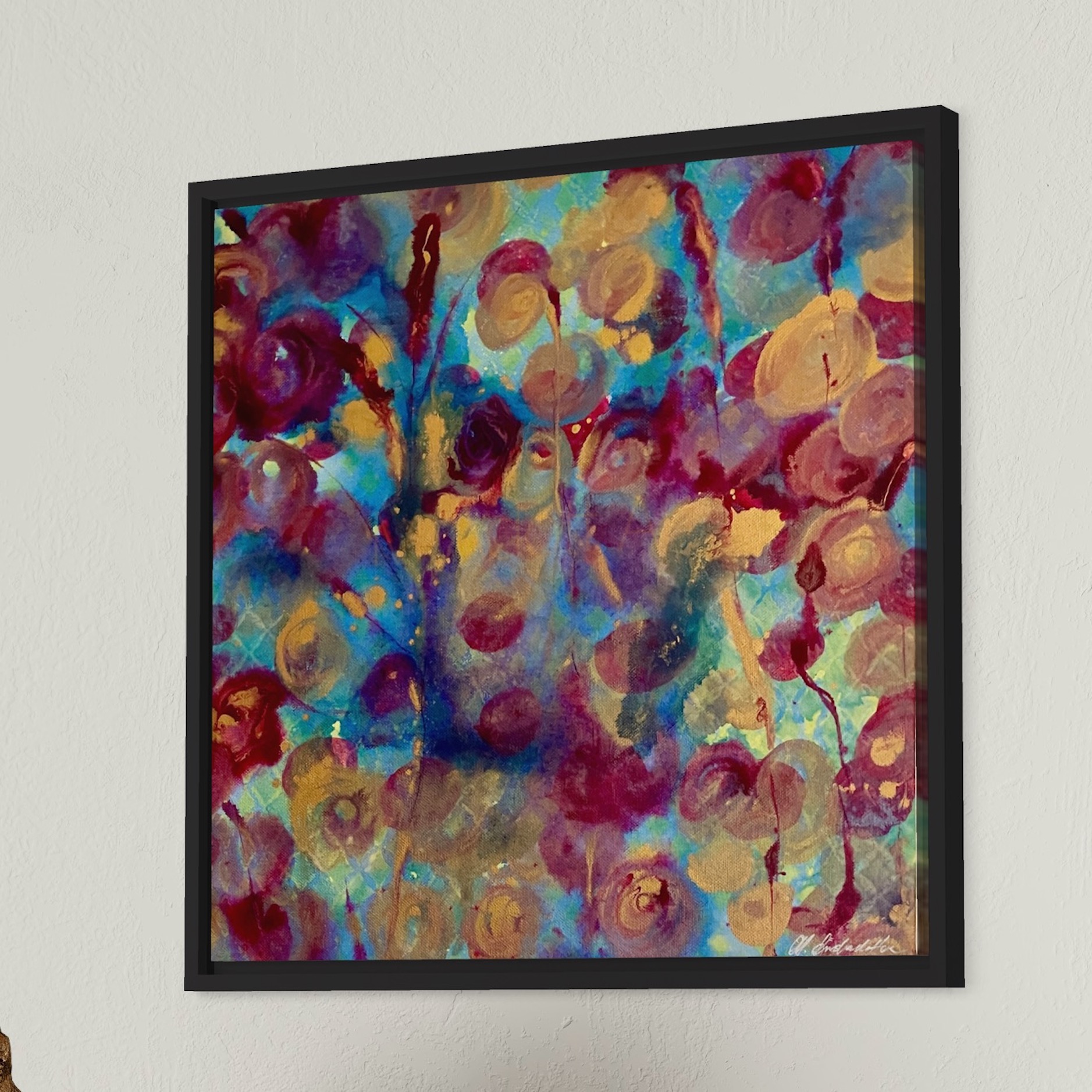 Målad helt med acrylic inc så den går även bra att ha under glas om så önskas. Originalmålning, mått på canvas 42 x 42 x 1,6 cm.